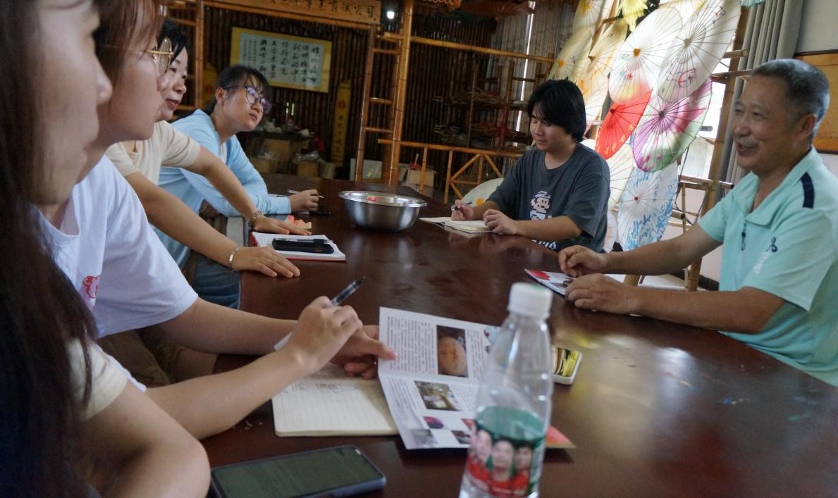 在交流过程中,同学们了解到明油纸伞发展过程中存在的一些问题:一是纸伞制作工序法索,熟悉时间长,传承难度高;二是多数工人是附近村庄的农户,农闲时才能进行纸伞制作,纸伞产量低;三是明油纸伞是地方特色文化产物,对外知名度不高。