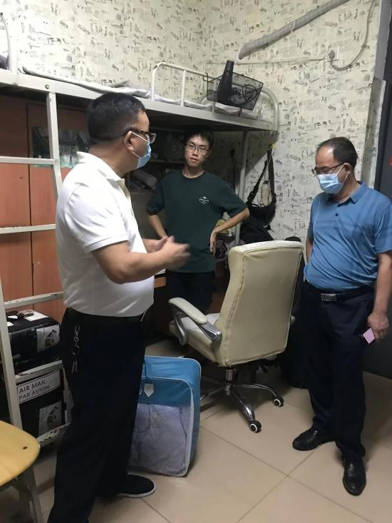 走访慰问过程中,何校长与学生进行亲切的交谈,详细了解学生假期学习生活情况,鼓励同学们到校后要努力学习,有困难及时向老师们反应;详细听取了疫情期间宿舍各项防疫措施,希望同学们在学业的关键阶段要做好人生规划,并叮嘱同学们平时要注意用电安全,以乐观的态度和饱满的精神状态投入到新学期的学习和生活中。