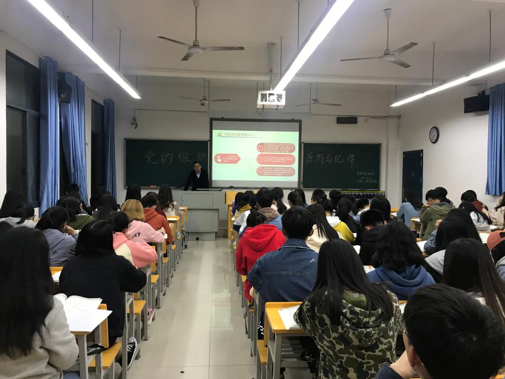 2019年5月7日19:30,管理学院第三十四期党校培训第一次党课在管理楼208进行。本次党课主题为“党的组织原则与纪律”,由管理学院党委书记徐习军教授主讲,来自不同年级、不同专业的入党积极分子们参加了党课学习。