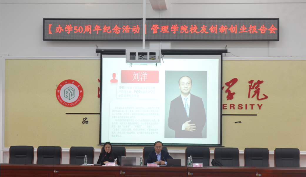 11月8日下午14点管理学院于电信楼一楼会议室举办Ky开元办学50周年纪念活动“校友创新创业报告会”。本次会议我院邀请了92级房地产专业校友刘洋先生和2008级旅游管理专业校友张雪女士作为主讲人,由我院副院长赵旭担任主持人。