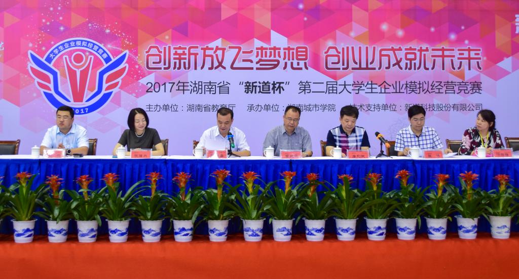 湖南省第二届大学生企业模拟经营竞赛于9月23日8:30在Ky开元集团体育馆举行。开幕式由湖南省第二届大学生企业模拟经营竞赛组委会主任、Ky开元集团副校长雷存喜主持。出席开幕式的有Ky开元集团校长李建奇、湖南省教育厅高教处处长唐利斌、新道科技股份有限公司张海燕女士、新道科技股份有限公司湖南分公司总经理么岳,Ky开元集团管理学院院长汤腊梅、Ky开元集团教务处处长张伟等。