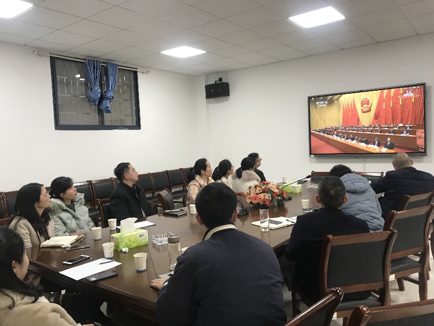 2021年2月25日上午9点50分,管理学院组织教职工70余人实时观看了在北京人民大会堂隆重举行的全国脱贫攻坚总结表彰大会,院领导、行政人员、学生辅导员在集中管理楼622会议室收看大会直播,专职教师在家收看。
