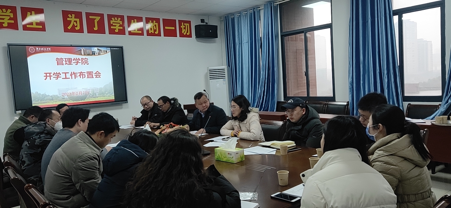 2023年2月7日上午10:00,管理学院在管理楼622召开2023年春季开学工作布置会。会议由院长孙倩主持,参加会议的有院党委书记王正安,院长孙倩,副院长刘刚、任国平,院党委委员王方俊、周琼,各教研室主任,各支部书记,三办的老师等。