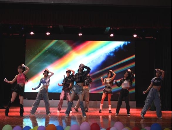 一首由学生乐队“脆皮五花肉”带来的歌曲《第一天》拉开了晚会帷幕。闪烁的镁光灯、充满节奏的鼓点,精彩纷呈的节目接踵而至。《attention&o.o》《桐言》《骁》《哇哩哩被子舞》《The times》《shooting star》等节目或活泼热辣,或唯美灵动,将青年人的蓬勃热情展现得淋漓尽致,现场观众或兴奋欢呼,或挥手配合,气氛愉悦轻松。财务管理教研室老师们深情演唱的歌曲《和你一样》、《祝你一路顺风》表达了其对2023年毕业生最诚挚的祝愿,也展现出浓浓的师生情谊。