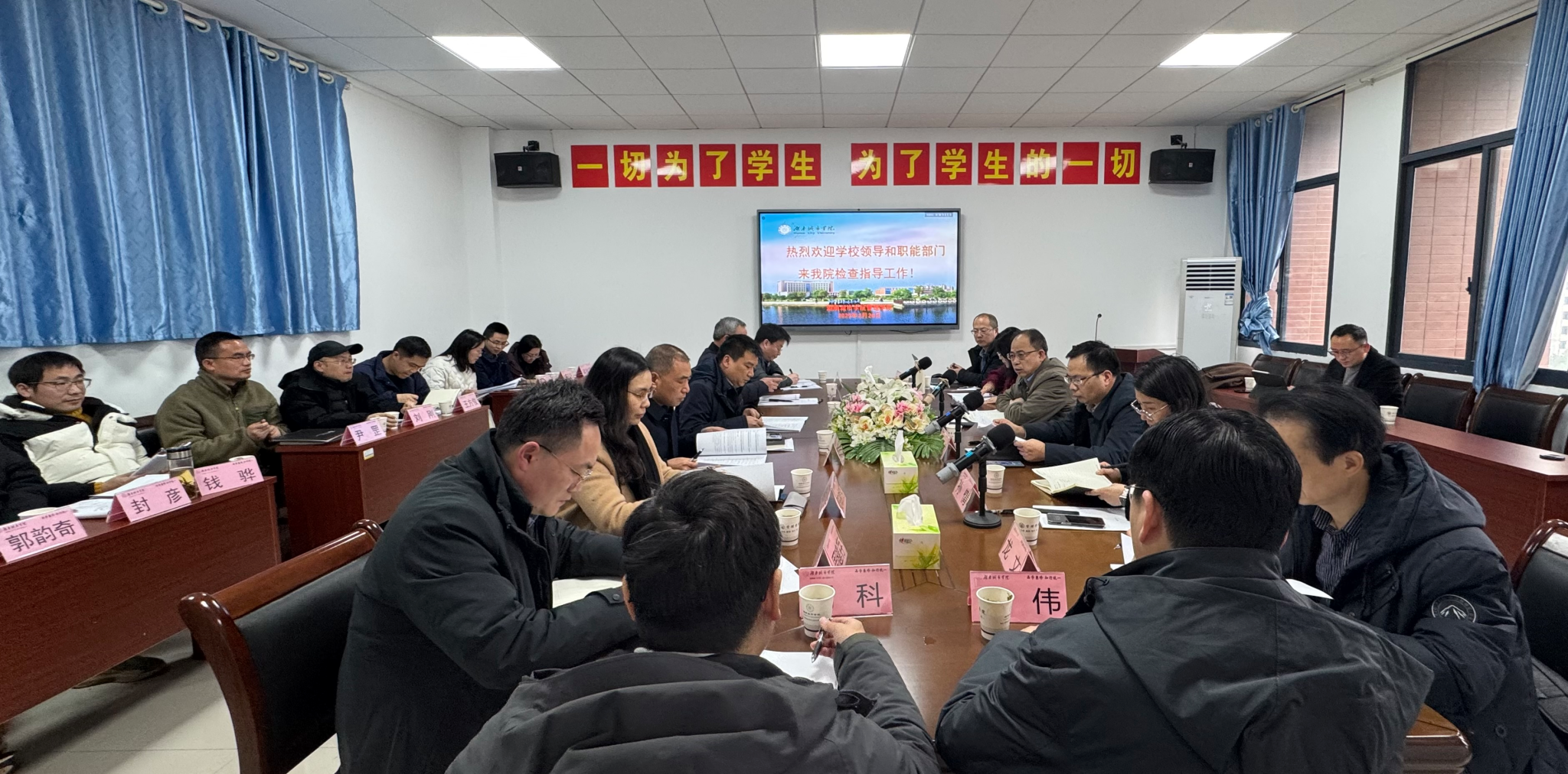 本网讯(通讯员:周晔)2月20日上午,校领导何振、袁志成、徐姝、孙倩率相关职能部门负责人一行来到管理学院,就贯彻落实湖南省教育会议精神、推动学院高质量发展进行专题调研。管理学院领导班子成员、各系室主任参加了调研座谈会。