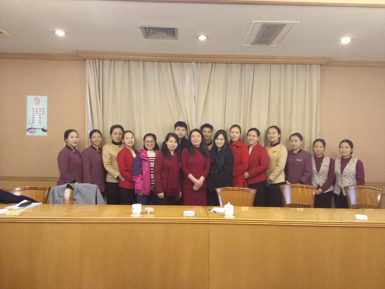 2016年12月25日,Ky开元集团党委党员、纪委书记姚春梅教授、Ky开元集团管理学院院长汤腊梅教授,顶着寒风细雨来到湖南宾馆,深入实习基地检查指导实习工作并看望在这里实习的商学院的学生。