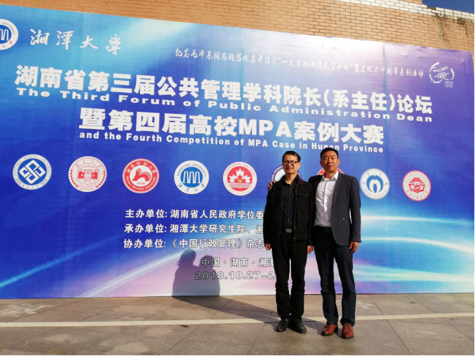 10月27日,湖南省第三届公共管理学科院长(系主任)论坛在湘潭大学举行,论坛由湖南省人民政府学位委员会办公室主办,湘潭大学研究生院和湘潭大学公共管理学院承办,《中国行政管理》杂志社协办。中国行政管理学会副会长高小平研究员、中国行政管理学会副秘书长、《中国行政管理》杂志社社长张定安研究员等专家学者出席论坛,论坛由全国MPA教指委委员、湘潭大学马克思主义学院(毛泽东学院)执行院长颜佳华教授主持。