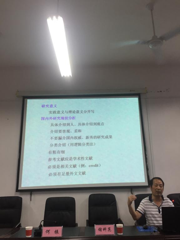 6月21日,管理楼504教室,一场以国家自科基金和社科基金(后简称“两金”)项目申报为研究对象的报告会在举行。来自武汉理工大学的博士生导师谢科范教授应管理学院和科技处的邀请,以国家基金申报策略为主题,为学校师生作了一堂富有指导和启示意义的研究报告。副校长何振教授主持了报告会。
