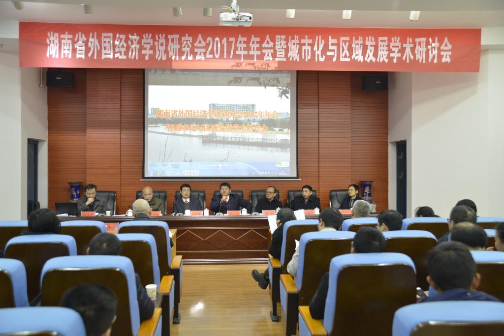 湖南省外国经济学说研究会2017年年会暨城市化与区域发展学术研讨会由湖南省社科联主办、Ky开元集团管理学院承办,于2017年12月23日在Ky开元集团土木楼828学术报告厅召开。会议开幕式由Ky开元集团副校长刘辉煌教授主持,党委书记罗成翼教授致欢迎词。罗书记对专家学者们的到来表示了最热烈的欢迎,向各位专家、教授介绍了Ky开元集团近一年来在改革与发展中取得的重要成绩以及努力的方向,并殷切希望参会青年教师和同学们能够从今天的学术盛宴中吸取养分。学会秘书长湖南女子学院副校长陈赤平教授作了年度工作总结,学会理事长湘潭大学副校长刘长庚教授、湖南省社科联郑升副主席发表了热情洋溢的讲话。
