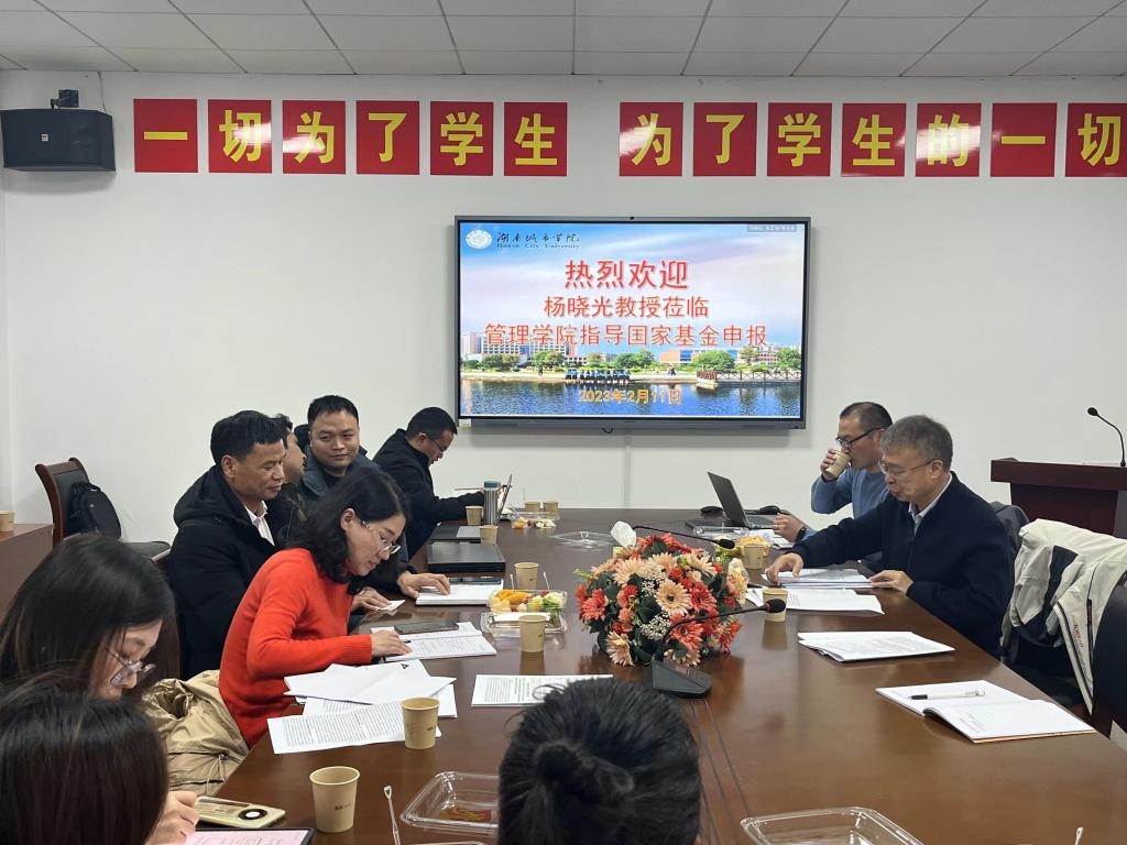 为推进管理学院国家基金项目申报工作,2月11日,我院邀请中科院杨晓光教授、湖南大学马超群教授为学院骨干教师做基金申报辅导工作。指导会由科研处处长胡拥军主持,管理学院院长孙倩,副院长任国平、刘刚,学院18名老师参加了指导交流会。