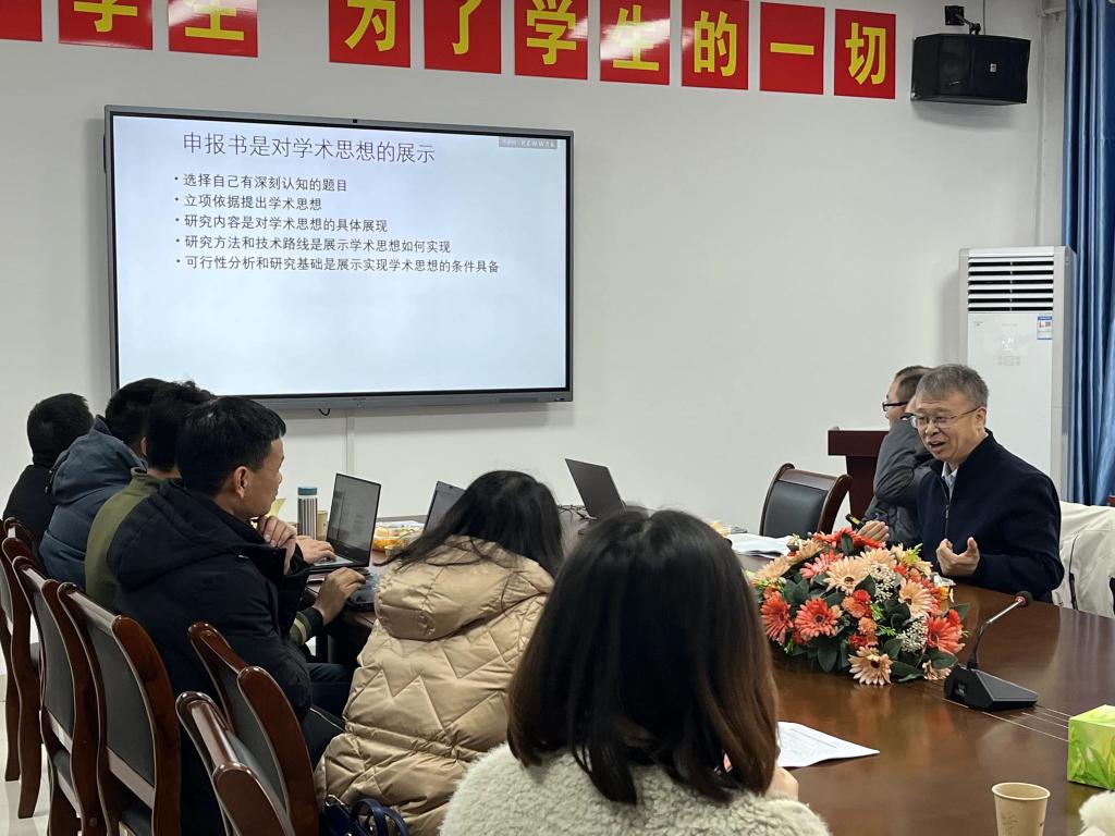 胡拥军处长首先对杨晓光教授和马超群教授的莅临指导表示感谢,介绍并分析了学院近年来国家基金申报及获批的总体情况,并对各位预申报国家基金的老师提出要求:希望大家珍惜机会,提高工作效率,踊跃交流,不断提升基金项目申报质量,在2023年基金申报中取得好成绩。