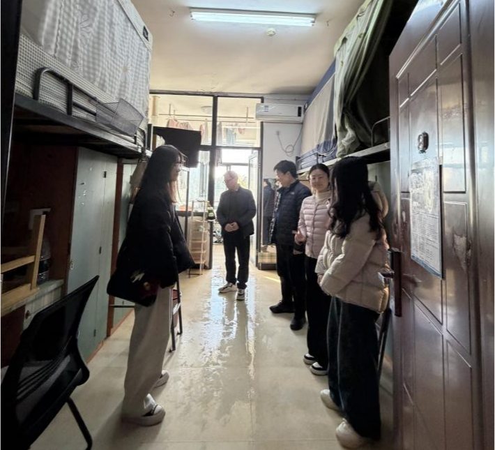 本网讯(通讯员:彭懿、吕鑫雨)为压实宿舍安全责任、排查隐患,1月8日下午3时,我院副院长任国平教授带队,率班主任彭懿、研究生办主任张胜及学生干部组成检查小组,深入宿舍开展安全专项检查并同步安全教育。检查聚焦消防、用电安全,逐间排查大功率电器、私拉电线等隐患,指导宿舍卫生整理。