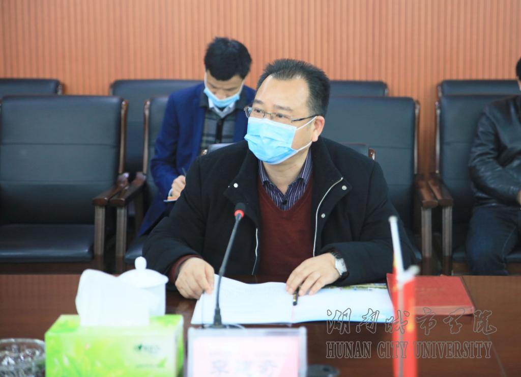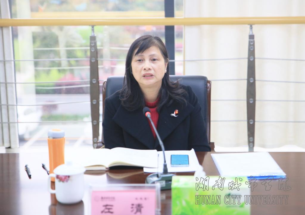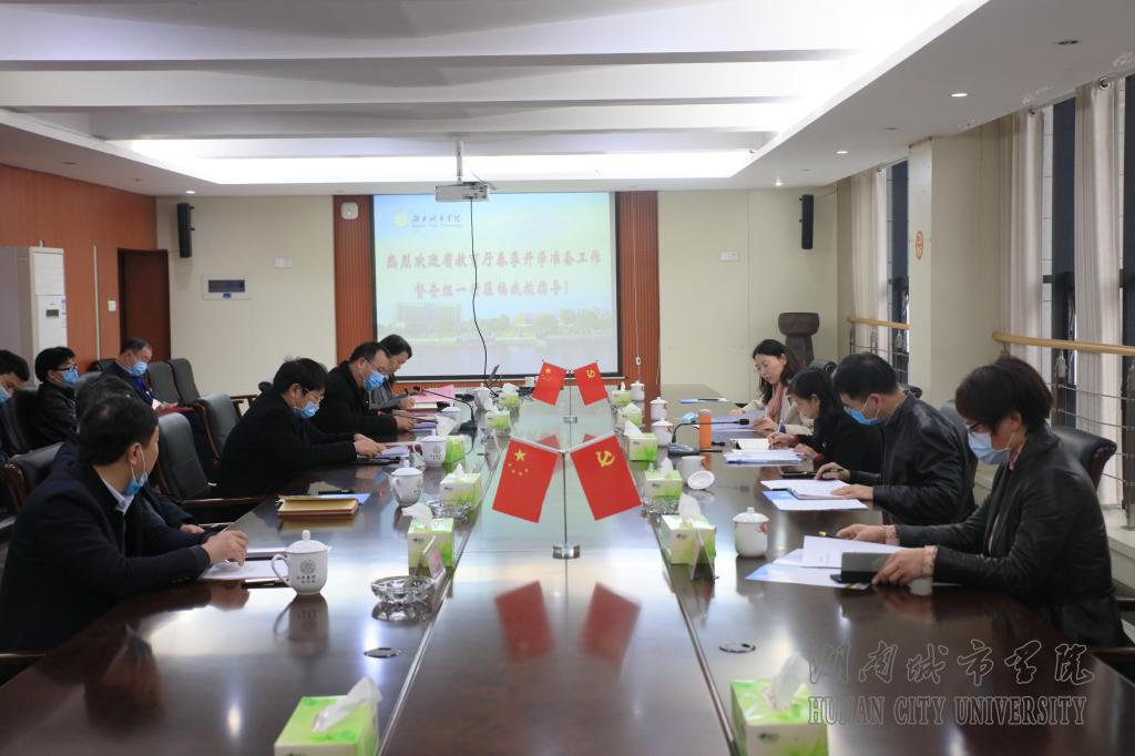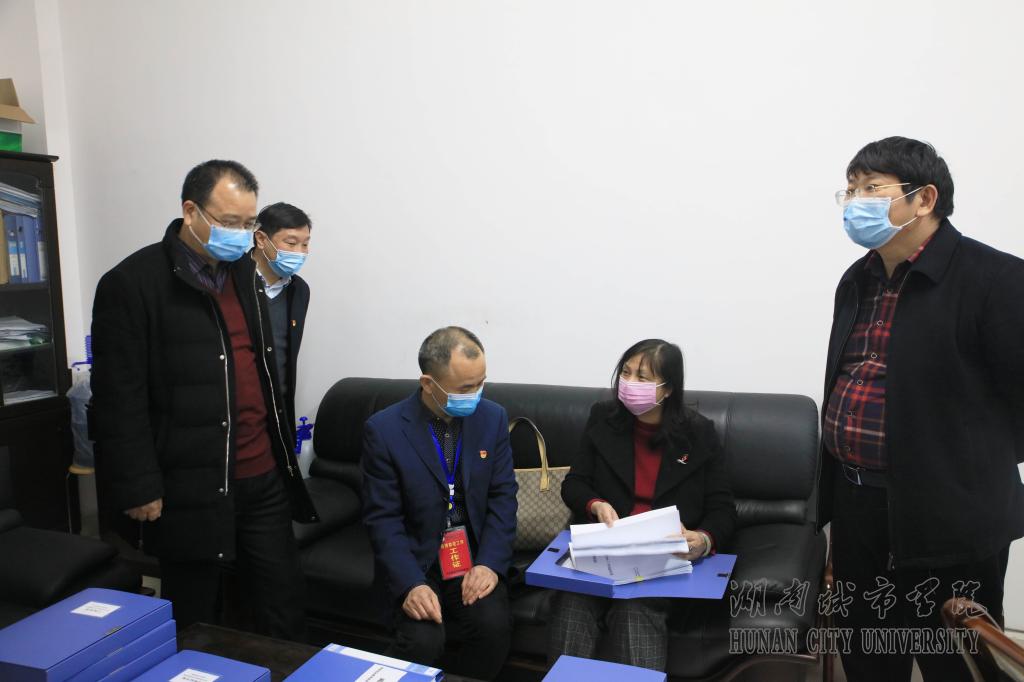 本网讯 2020年4月1日,湖南省教育厅二级巡视员左清带队来校就新冠肺炎疫情防控期间春季开学准备工作情况进行实地督查。党委书记罗成翼,校长李建奇,副校长夏宏宇,纪委书记姚春梅,副校长谭献良等热情接待了左清一行。