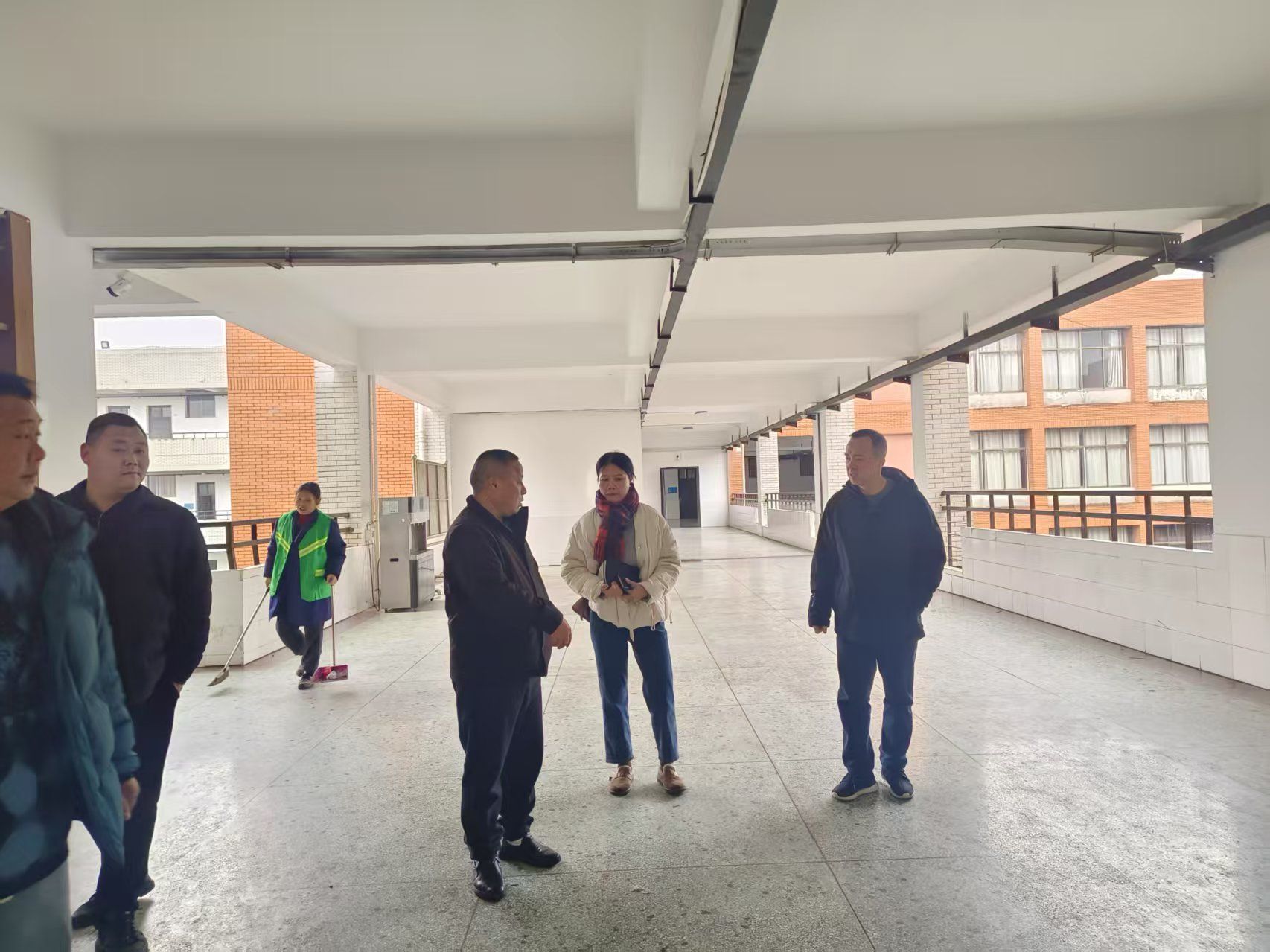 吕贤军一行深入食堂、教学楼、办公楼、高压配电室等关键区域,重点查看了餐饮服务、教学设施、环境卫生、设施设备运行等方面的情况。