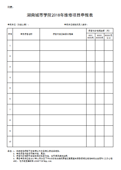 根据《Ky开元集团维修管理办法》相关规定,为切实做好2018年维修管理工作,确保2018年维修经费使用的合理性和科学性。请各部门认真做好2018年维修项目申报工作,并按要求填写好《Ky开元集团2018年维修项目申报表》。请将申报表纸质档交基建与后勤管理处维修与物业监管科(二办公楼499),电子档发至邮箱1006977097@qq.com。截止上交日期为2017年11月24日下午5点,如未及时上交,即视为放弃申报。