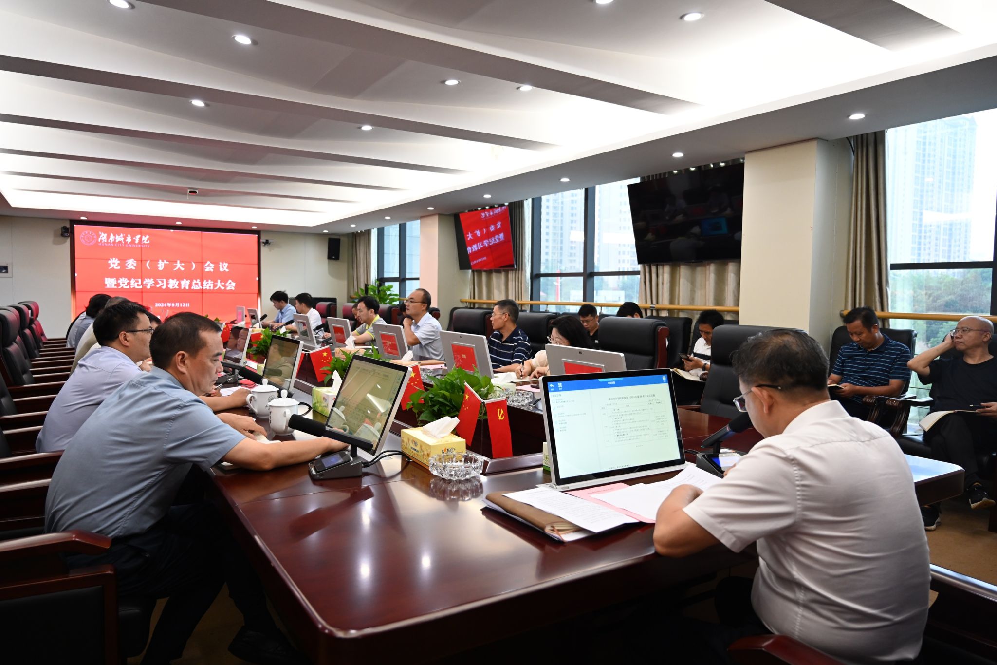 本网讯 9月13日上午,学校召开党委(扩大)会议,传达学习习近平总书记重要指示及中央党的建设工作领导小组文件精神,总结学校党纪学习教育情况,并就党纪学习教育常态化长效化作出安排。党委副书记、校长何振主持会议。全体在家校领导,各党务部门主要负责同志,各二级党组织书记参会。