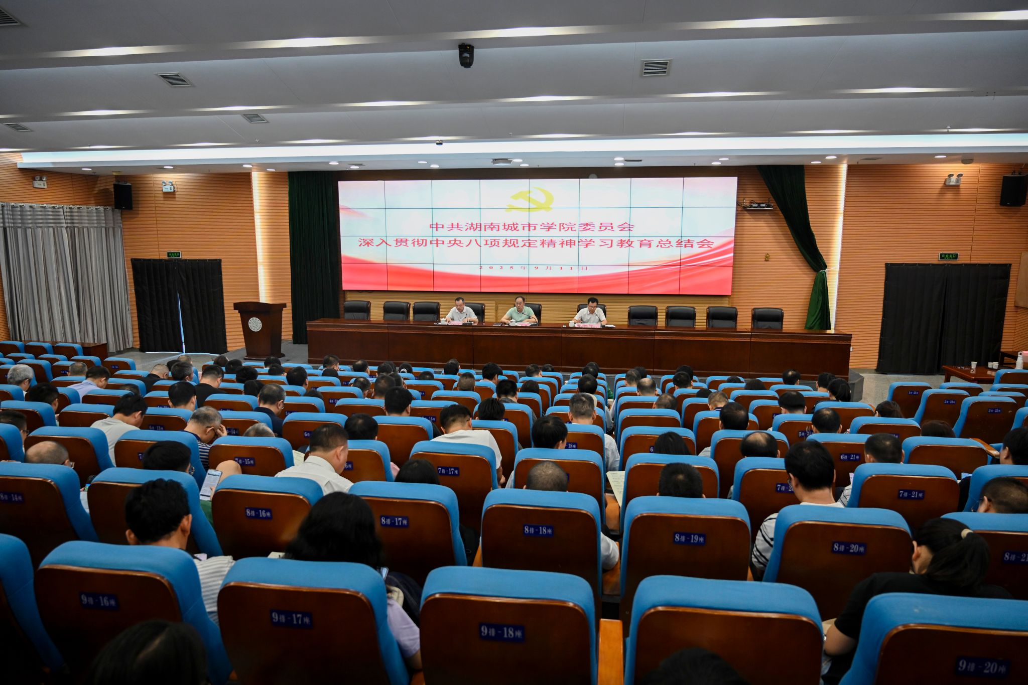本网讯 9月11日,学校在图书馆报告厅召开深入贯彻中央八项规定精神学习教育总结会,总结学习教育成效,巩固拓展学习教育成果,推动作风建设常态化长效化。党委书记何振强调,学习教育结束不是作风建设的终点,而是新的起点。要始终保持清醒头脑,以更高标准、更严要求审视自身工作,进一步巩固拓展成果,推动工作再上新台阶。