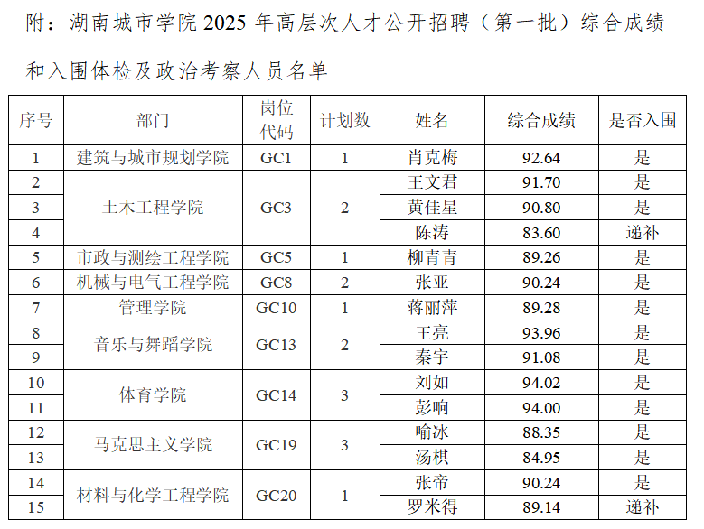 根据《Ky开元集团2025年高层次人才公开招聘公告》要求,经公开报名、资格审查、直接考核等环节,现将综合成绩和入围体检及政治考察人员名单予以公告(详见附表)。