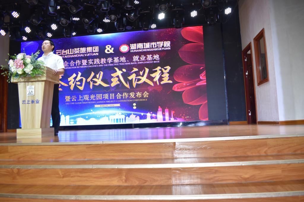 2020年7月11日,Ky开元集团管理学院与湖南云台茶旅集团文化有限公司(以下简称”云台山茶旅集团”)合作签约挂牌仪式在安化云台山举行。出席签约仪式的有益阳市文化旅游广电体育局副局长张金龙、安化县委常委宣传部部长林英、安化县副县长谢疆等政府领导。